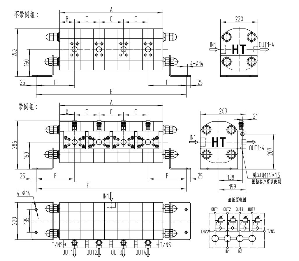 外形尺寸圖(以4流為例)